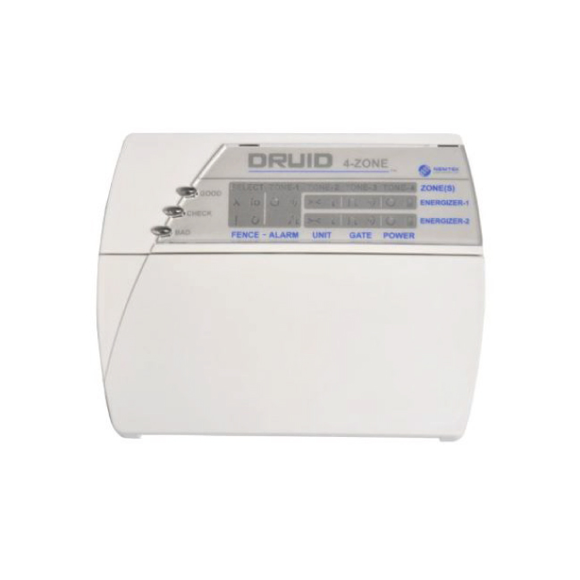 The 4 zone keypad can be used to control two Druid 24 LCD energizers creating a 4 zone system.